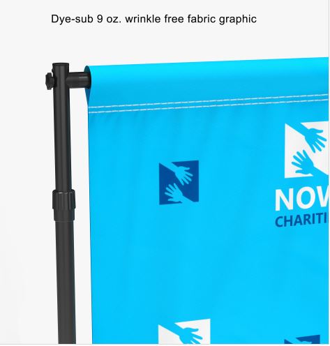 Our Large Tube Back Drop stands apart from the competition. While other backdrops on the market are flimsy 1" tubing, Our backdrops have telescoping 1.625" diameter poles for market best stability. This display can be adjusted easily to fit a range of graphic sizes on our 9oz wrinkle free dyesub material. Great for events on the go the stand packs up neatly into the free carry bag, and assembles in just a few minutes. It's popular for use as a step and repeat, photo backdrop or tradeshow display.