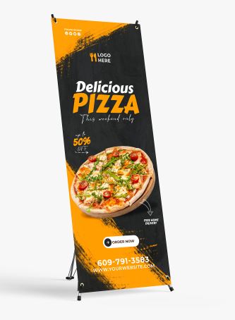 Showcase your promotional banner with the X-stand. It is durable and is the most cost effective display. Stand includes a free nylon travel bag making it easy to carry to trade show exhibits, lobby exhibits, and much more. Since the graphic is installed using grommets there's no better banner stand product on the market for swapping out graphics.